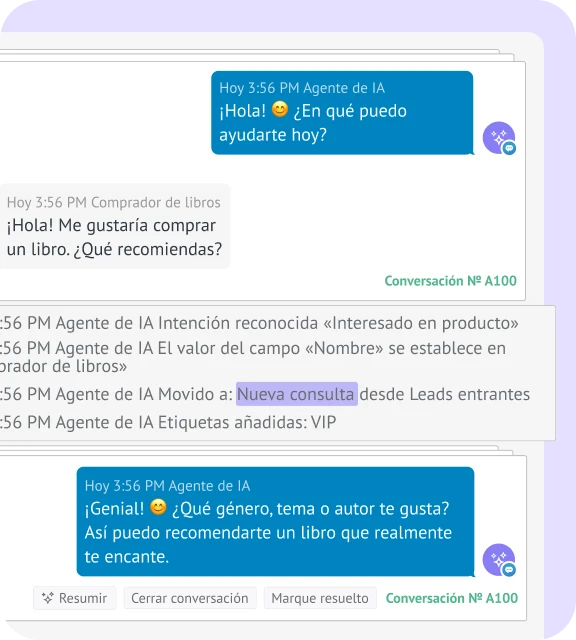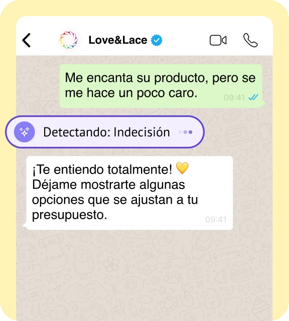 Tu agente de IA conoce tu catálogo, a tus clientes y su estilo. Recomienda exactamente lo que quieren, incluso antes de que lo pidan. Eso no es automatización. Es intuición.