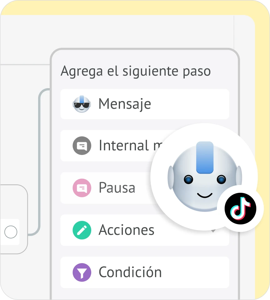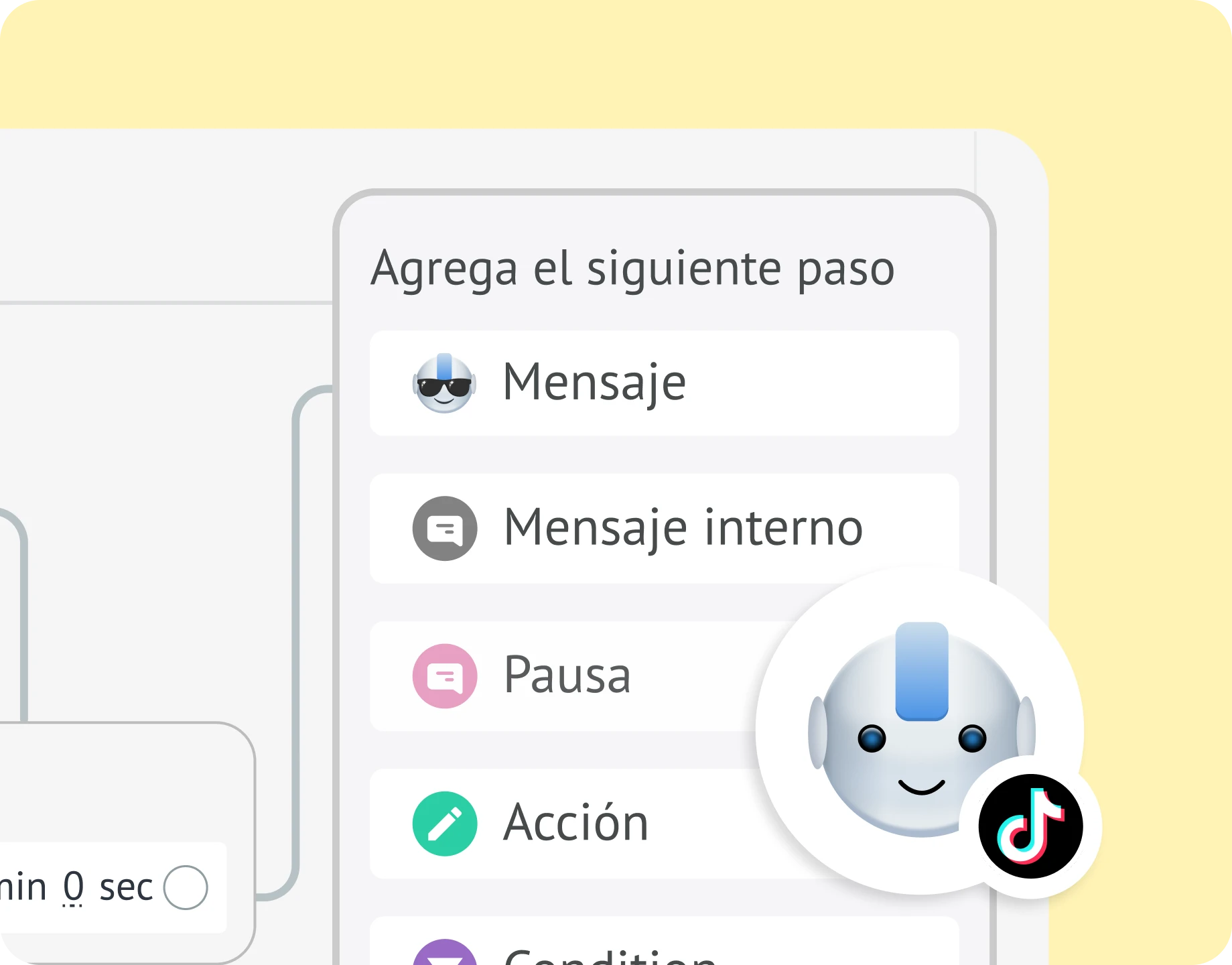 Automatiza chats, cualifica leads y realiza seguimientos con un chatbot potenciado por IA en TikTok y más.