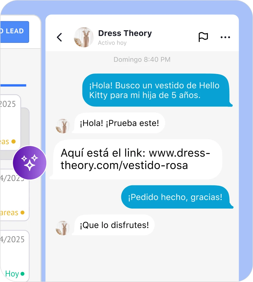 El Agente de IA de Kommo mantiene vivas las conversaciones: responde, comparte información y envía seguimientos a tiempo.