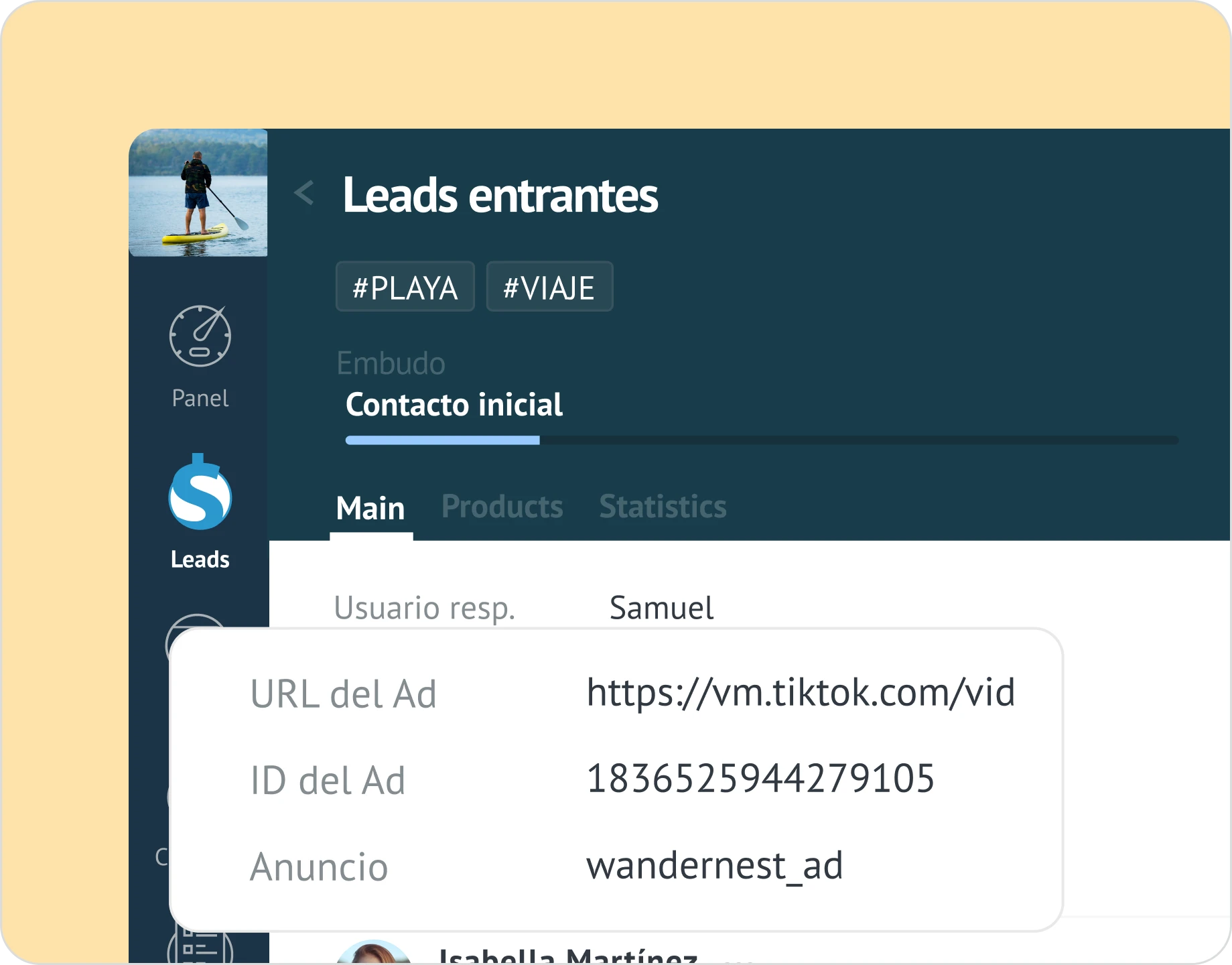 Cierra la venta con un CRM de TikTok antes de que tu audiencia siga scrolleando, y analiza tus métricas desde el panel de control.